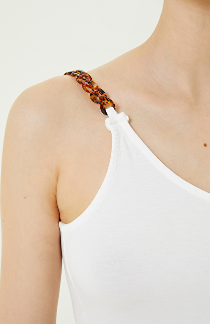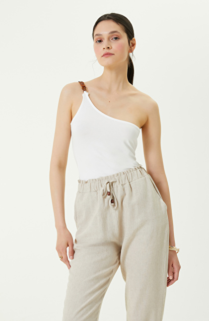 Tek Omuz Yaka Ekru Tshirt