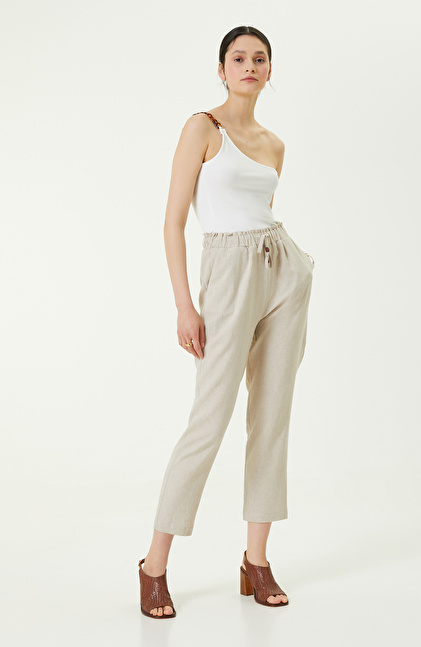 Feminen tarza sahip kadınlara sofistike bir görünüm kazandıran Tek Omuz Yaka Ekru Tshirt; lüks, kaliteli ve rahat yapısı ile öne çıkar. NetWork Special koleksiyonunun sevilen parçalarından biri olan bu tişört, zamansız moda anlayışına uygundur. Aurası yüksek kadınlara hitap eden parça kombinlerinize ilham verici bir dokunuş yapar. Üzerinizde kusursuz bir duruş sergilerken gün boyu rahat etmenizi de sağlar. Omuz askısında bulunan aksesuar detayı, tek hareketle daha iddialı ve cesur bir stil yaratır. Bej renk bir kumaş pantolon, taba renk topuklu sandalet ve gold aksesuarla kombinleyerek hem günlük şıklık elde edebilir hem de özel günlere uyum sağlayabilirsiniz.
