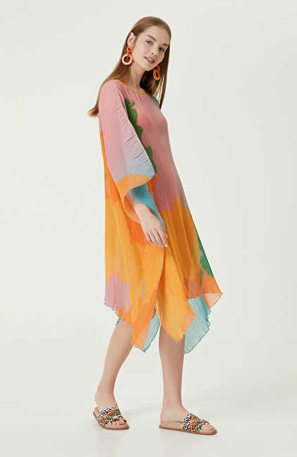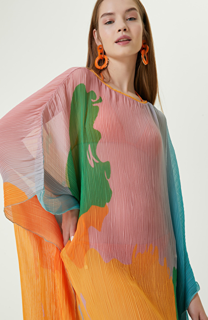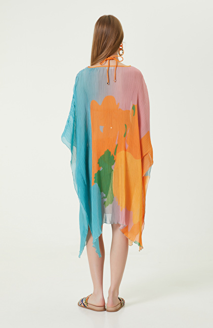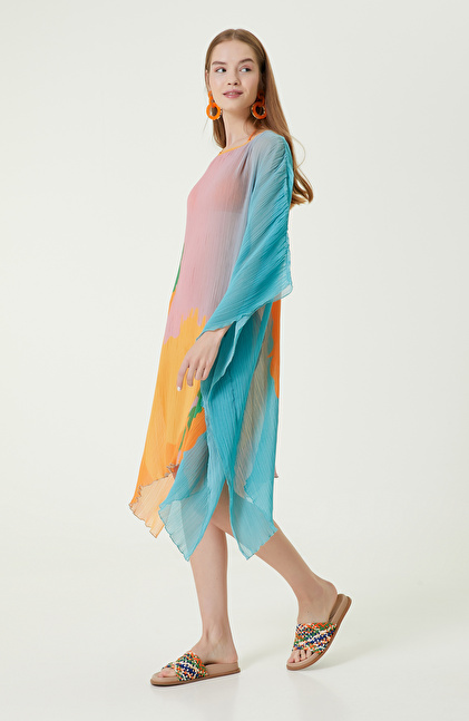 NetWork'ün Forever Play serisinde yer alan Turkuaz Yeşil Desenli Pareo, plaj görünümlerinizi lüks şekilde tamamlayan parçalar arasındadır. Yeşil pareo, hem renkleri hem de modeli ile dikkat çekici tasarımları tercih eden kadınlara hitap eder. Giyilebilen pareo bisiklet yaka ve uzun kol tasarımıyla yaz aylarında sizi güneşten korur ve plajda rahatlıkla gezmenizi sağlar. Desenli kumaşı hafif ve aynı zamanda oldukça havadar yapıya sahiptir. Pembe, turuncu, mavi, yeşil gibi renkler içerdiğinden hemen her bikini ve mayo ile eşleştirilebilir. Geniş kalıbı ise her vücut tipine uyumludur. Siz de desenli pareoyu sarı bikini, pembe terlik, hasır çanta ve beyaz güneş gözlükleriyle kombinleyerek plaj görünümleri oluşturabilirsiniz.