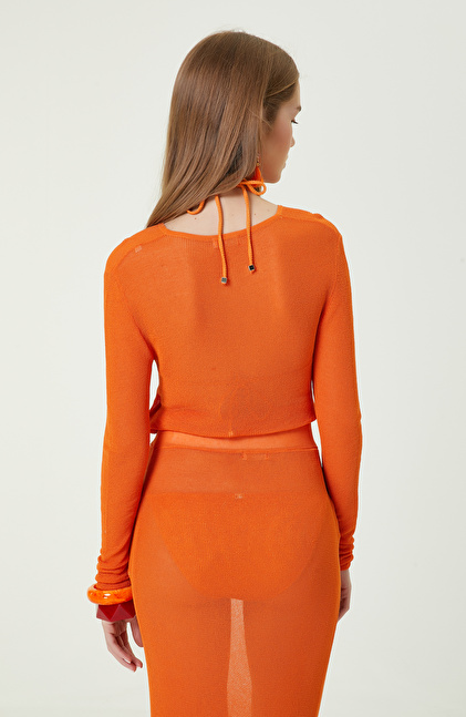 Turuncu Bisiklet Yaka Plaj Bluz