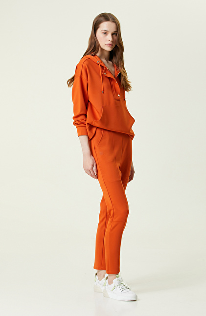 Stil ve konforu bir arada sunan Turuncu Dar Paça Eşofman, NetWork Casual çizgisinin en canlı tasarımları arasında yer alır. Penye dokuma ve modal kumaşın doğal yapısı sayesinde üst düzey rahatlık sunar. Basic fit kesimi konforu artırırken normal bel detayı özgürce hareket etmenizi sağlar. Rahat giyim seçenekleri arasında sarsılmaz bir yeri olan dar paça eşofman dikiş detaylıdır ve straight forma sahiptir. Hafta sonu stili, ev modası ve gündelik yaşamda bedeninizi dinlendirerek enerji toplamanıza yardımcı olur. Modal eşofmanı; Crop sweatshirt, açık renk spor ayakkabı ve benzer tonlardaki sırt çantası ile kombinleyip konforu baş role taşıyabilirsiniz.