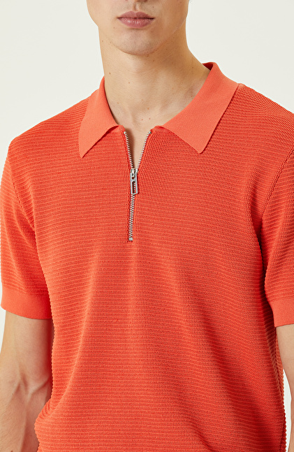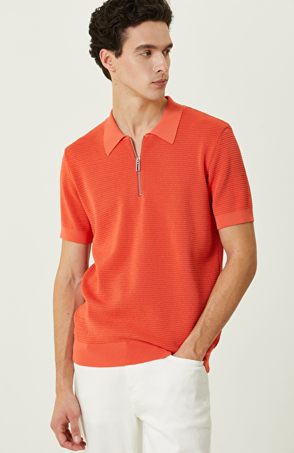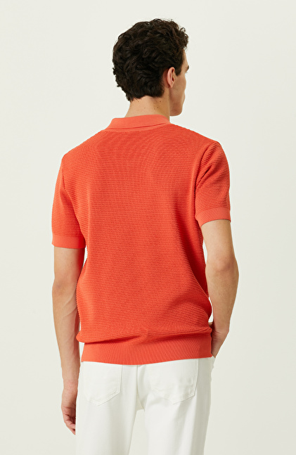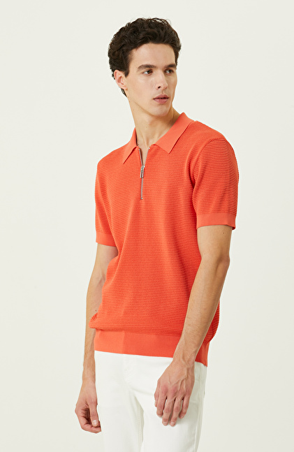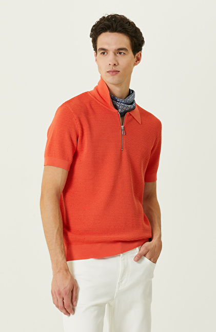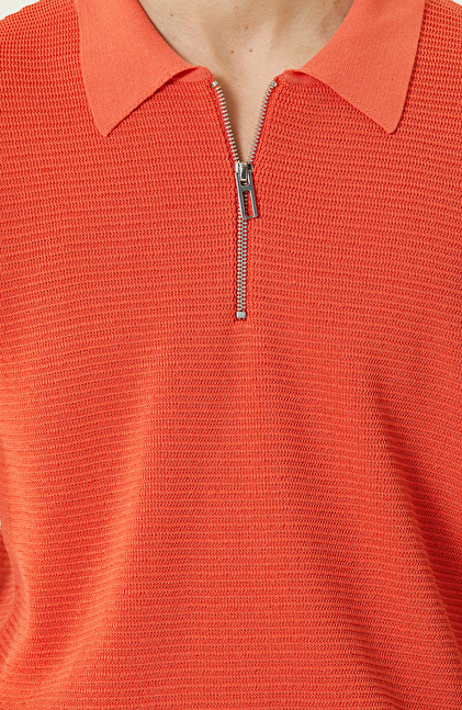Turuncu Polo Yaka Kısa Kollu Triko Kazak