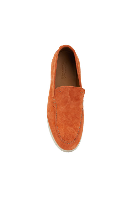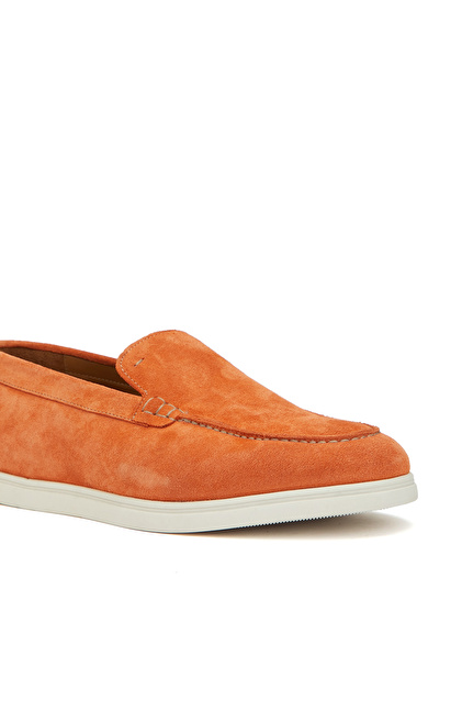 Turuncu Saraç Detaylı Erkek Deri Loafer