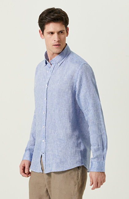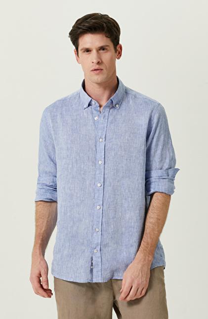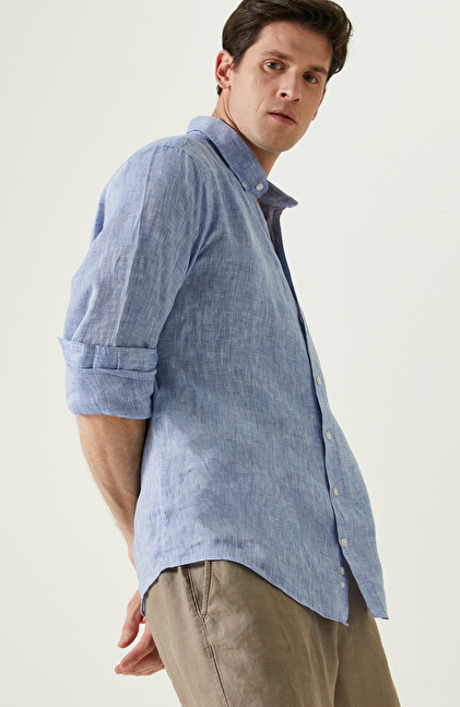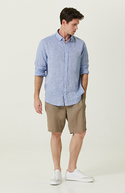 NetWork’ün zamansız moda anlayışını yansıtan Uzun Kollu Mavi Keten Gömlek, şehirli tarza sahip erkeklerin vazgeçilmezlerinden biri. Yüksek kalite ve konforu bir araya getirerek gün içinde hem şıklık hem de rahatlık sunar. Smart Casual koleksiyonunda yer alan bu parça, keten kumaşın kalitesi sayesinde kusursuz ve yüksek duruş sergiler. Slim fit kalıbı da hem klasik hem de sportif bir görünüm sunar. Böylece farklı kullanım alanlarına hitap ederek lüks ve iddialı stili ulaşılabilir kılar. Sade, cepsiz ve düğme kapatmalı tasarıma sahip bu gömleği, camel rengi bir keten şortla ve düz beyaz spor ayakkabıyla kombinleyerek dinamik bir stil oluşturabilirsiniz.