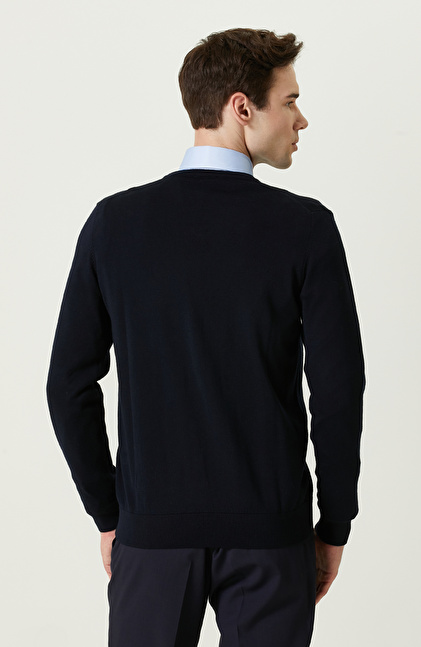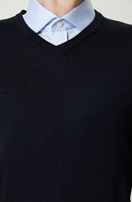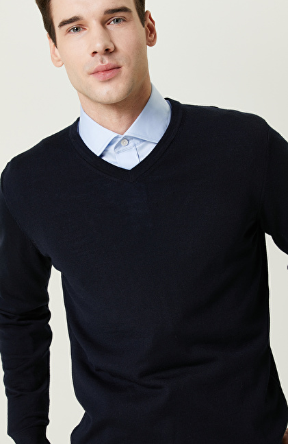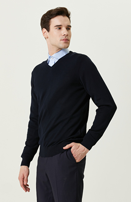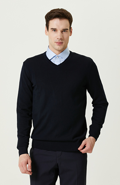 Basic tasarımı ile V Yaka Lacivert Triko Kazak, modern tarza sahip erkeklere hitap eder. Şehirli stile sahip ve giyimine özen gösteren erkekler için güzel bir seçenektir. NetWork Smart Casual koleksiyonunda yer alan bu parça, lüks tasarım ile konforlu yapıyı bir araya getirir. Böylece gün içinde elegan bir görünüm ve ekstra rahatlık elde edebilirsiniz. Yün içeren kumaşı hem oldukça niteliklidir ve üzerinizde yüksek duruş sergiler hem de sıcak tutar. Şıklığını uzun süre koruyan bu kazak, zamansız tasarımı ile hem gün içinde hem de ofis ortamında kombinlerinizi tamamlayabilir. Lacivert rengi ile mavi gömlek, lacivert kumaş pantolon ve casual ayakkabı kombinlerine uyum sağlar.