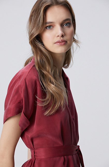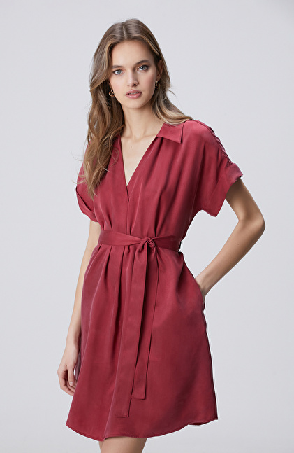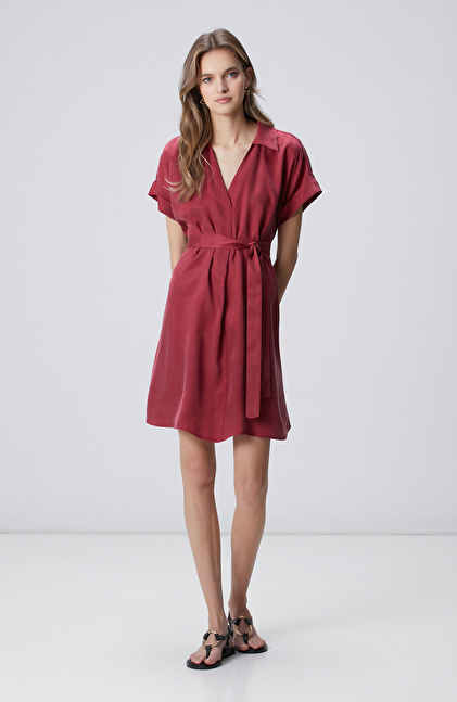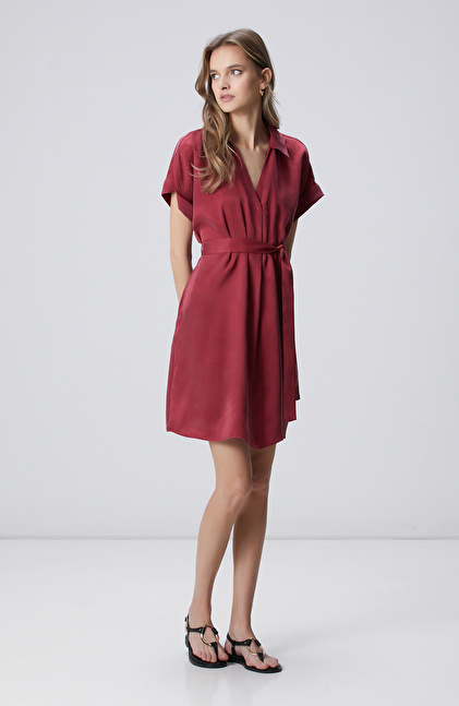 Vişne Cupro Mini Elbise