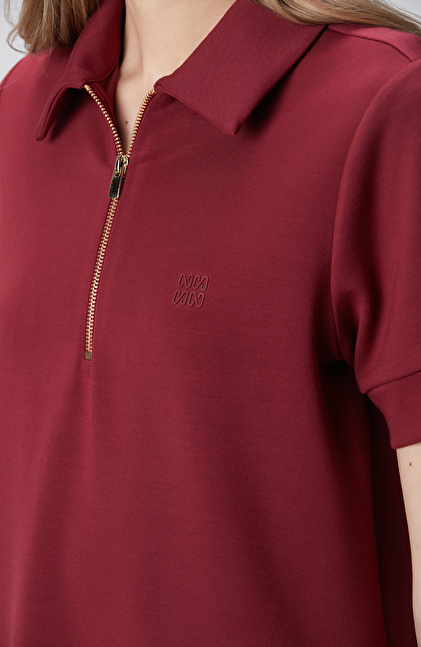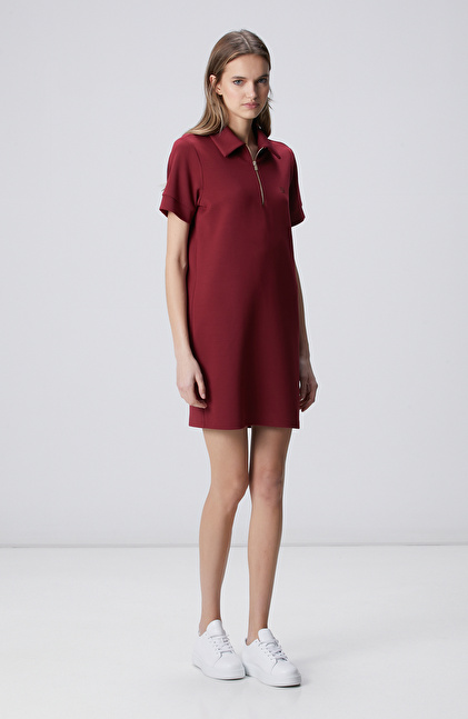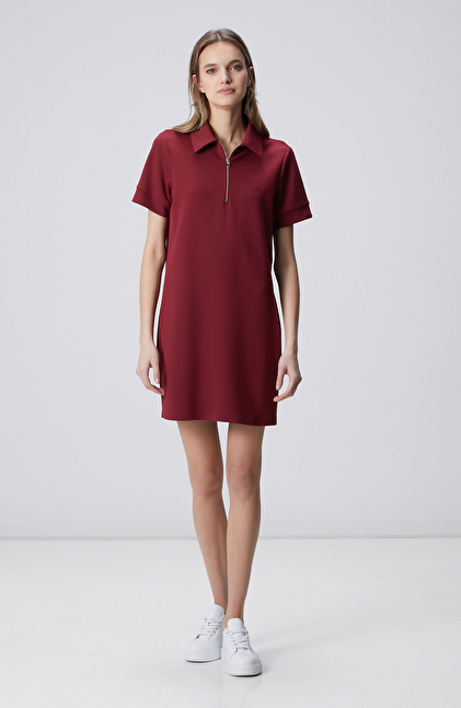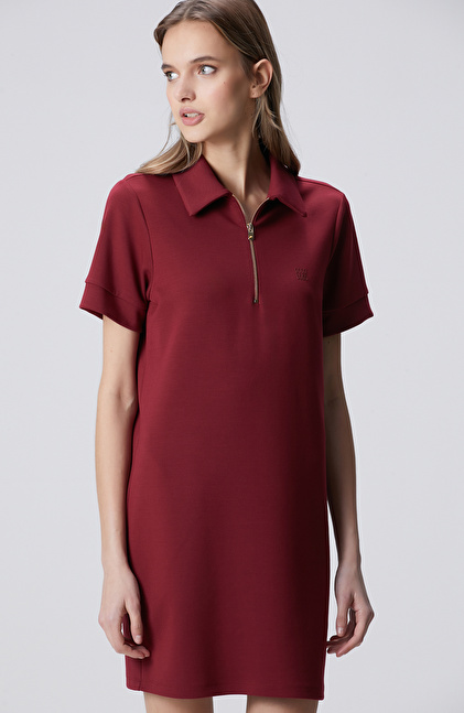 Vişne Kısa Kol Polo Yaka Mini Boy Örme Elbise