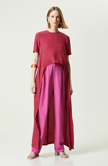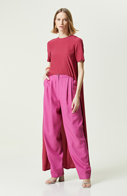 Network’ün t-shirt seçkisine sıra dışılık kazandıran Vişne Rengi Kısa Kollu Bisiklet Yaka Bluz, tarzıyla fark yaratmak isteyen kadınların öncelikli tercihleri arasında yer alır. Smart Casual koleksiyonunda bulunan tasarım kısa kol, slim fit kesim, fermuar detay ve bisiklet yaka gibi klasik pek çok unsuru yeniden yorumlayarak hazırlanır. Arkası bedeni tamamen kapatan t-shirt, ilkbahar ve yaz kombinleriyle başarıyla takımlanır. Skinny fit, slim fit, mom ve casual denim pantolonların üzerinde tasarımı kullanabilirsiniz. Halka küpe, uzun kolye gibi aksesuarlarla tasarım daha şık bir hale getirilir. Topuklu sandalet, beyaz sneaker ya da loafer ayakkabı ile vişne renkli bluzu hem yaz hem de ilkbahar aylarında kullanabilirsiniz.