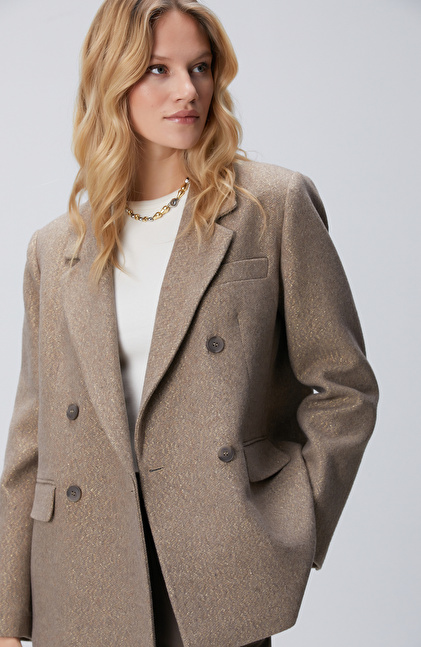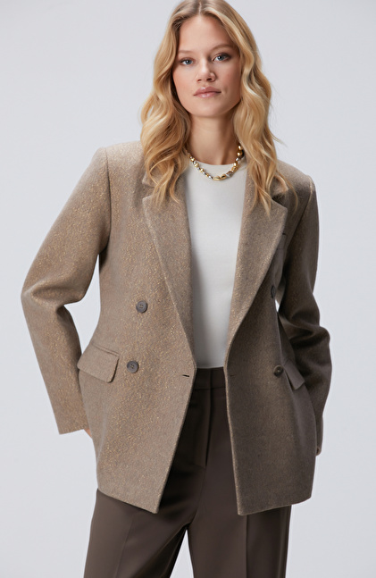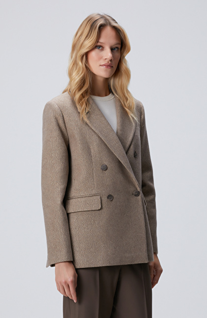 Vizon Balıksırtı Desenli Kruvaze Ceket