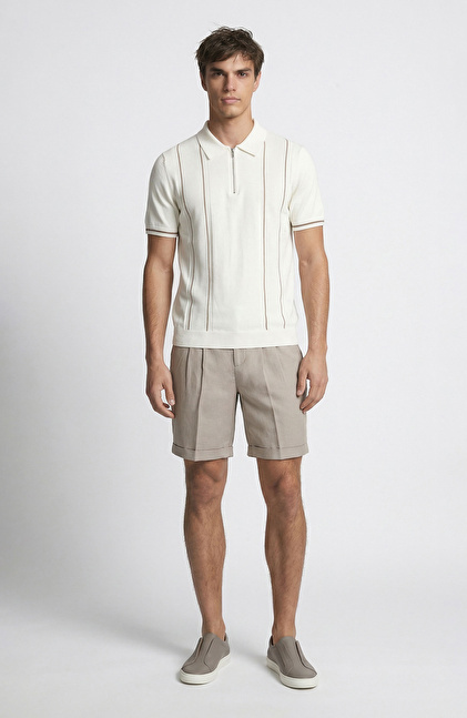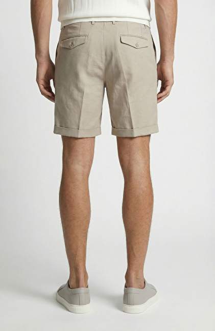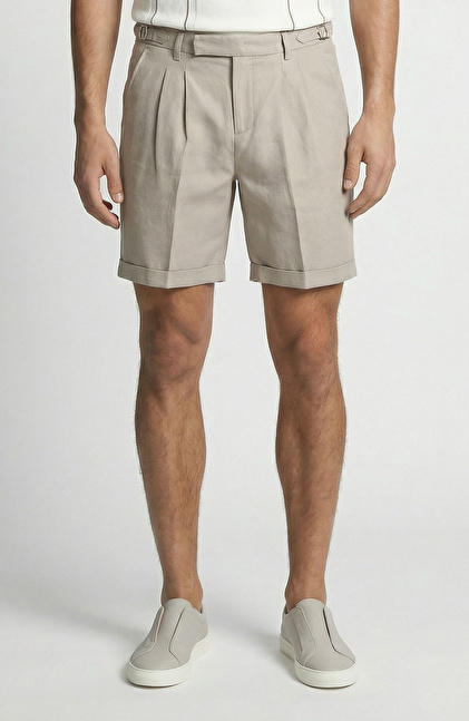 Vizon Beli Tokalı Keten Karışımlı Şort