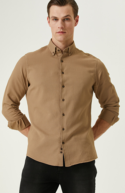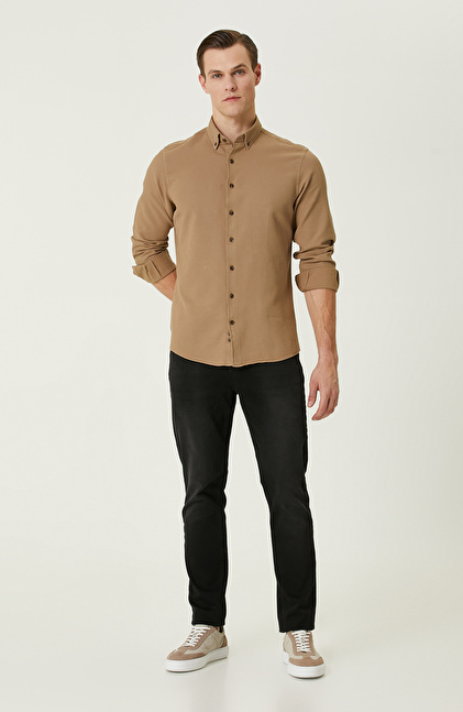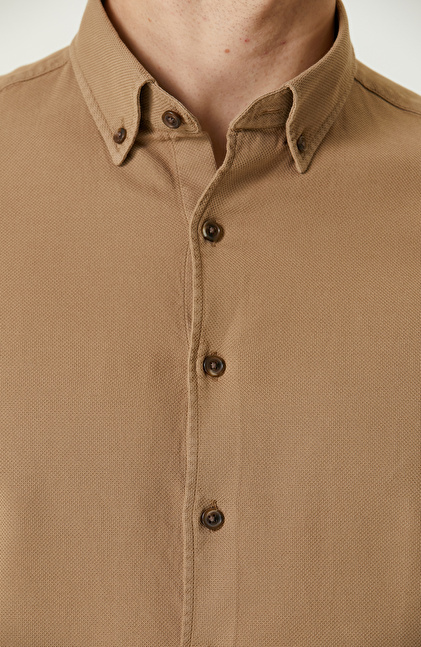 Comfort Fit; Düğmeli Yaka; Uzun Kol; Dokuma Gömlek; Parça Boyalı; Petek Desenli
