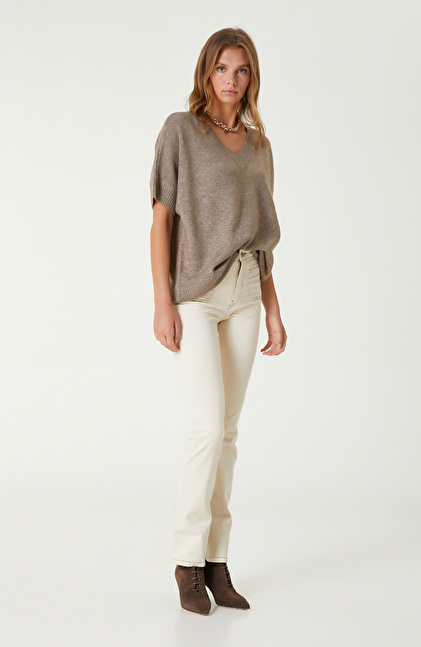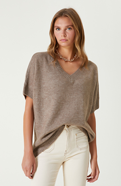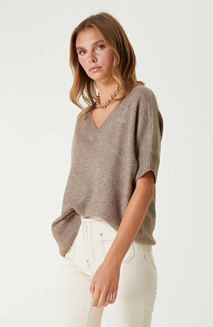Basic Fit; V Yaka; Kısa Kol Kazak