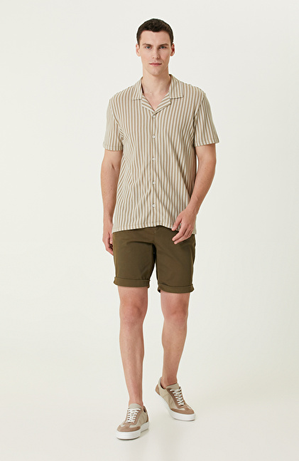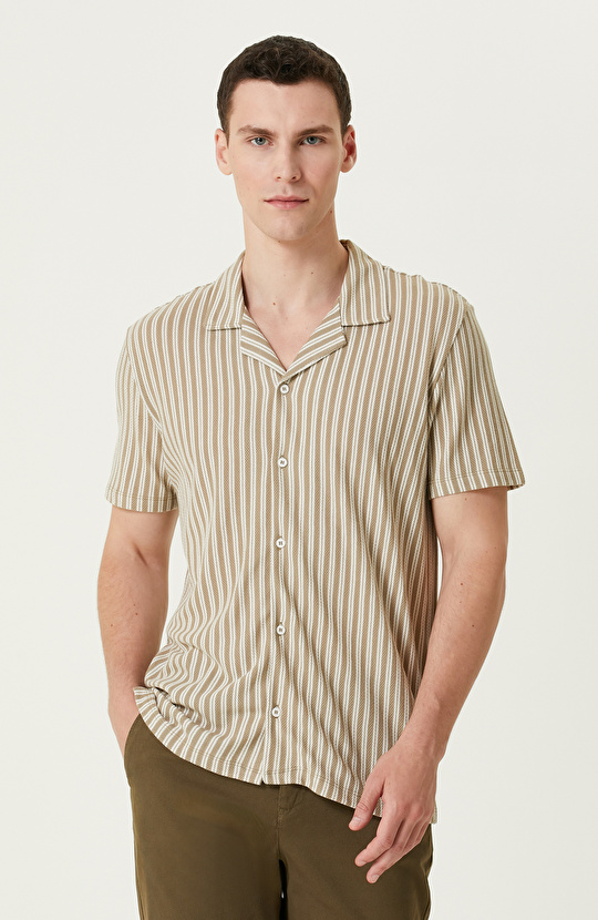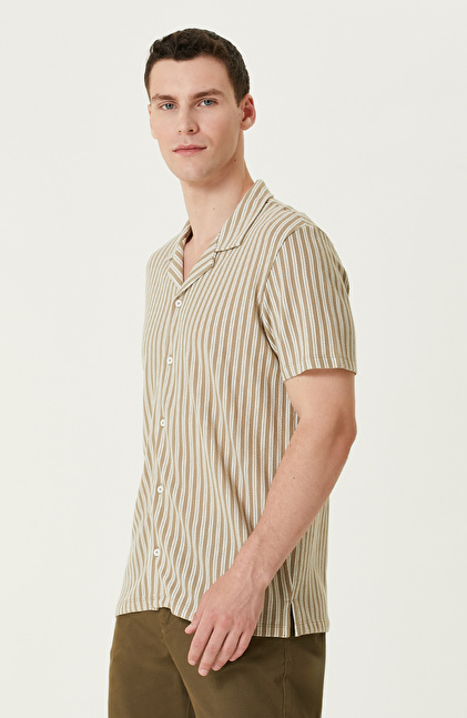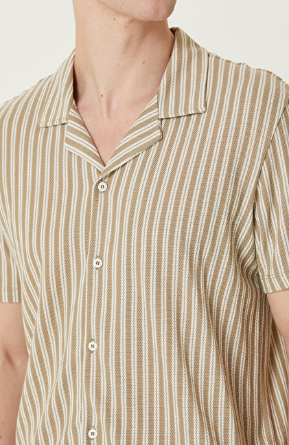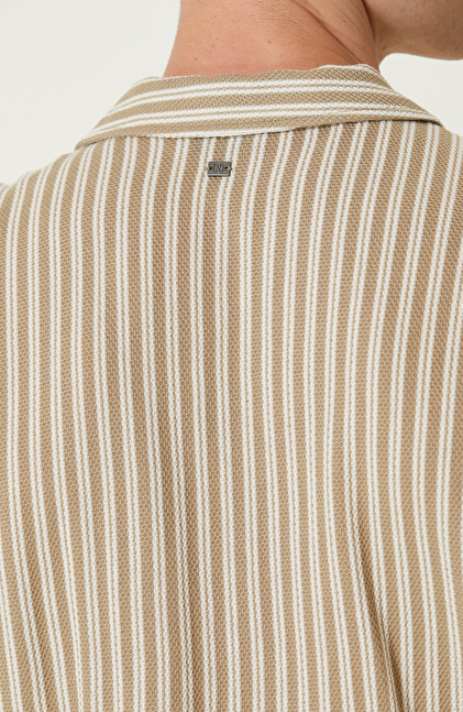 Vizon Kırık Beyaz Çizgili Gömlek