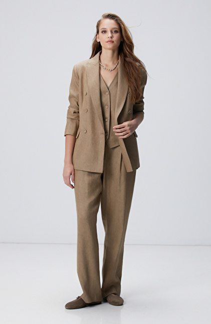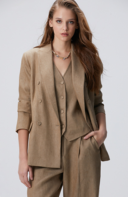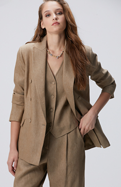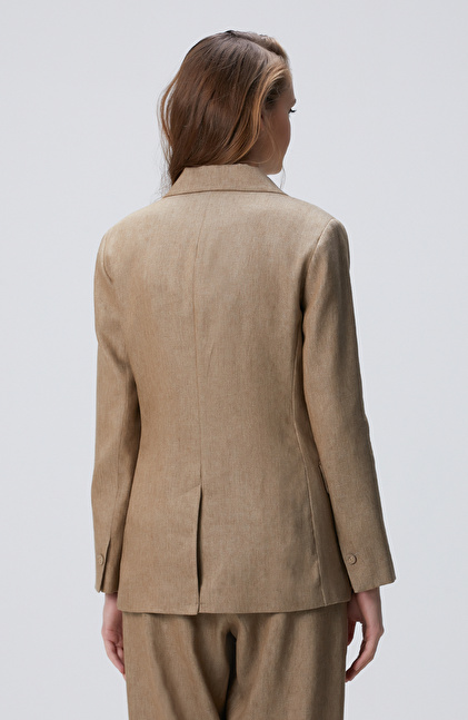 Regular Fit; Ceket Yaka; Uzun Kol Ceket; Keten Karışımlı; Kapaklı Cepli