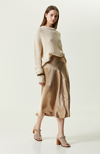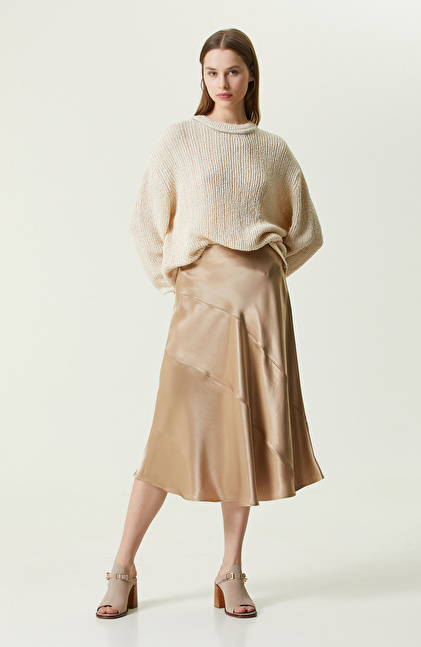 NetWork’ün yaratıcı ve lüks tasarımlarından olan Vizon Midi Boy Saten Etek, etkileyici aurası olan kadınlara hitap eder. NetWork Smart Casual koleksiyonunda bulunan parça, midi boy ve normal bel detayları ile tasarlanır. Regular fit kesimli eteğin vücut üzerinde duruşu oldukça şıktır. Kesik detayları, NetWork’ün yenilikçi moda anlayışını gözler önüne serer. Üst kalite kumaşlardan elde edilen etek, yumuşacık dokuma hissiyatlıdır. Kesik detaylı evaze saten eteği iddianızı yansıtacak biçimde kombinlemek için; bisiklet yaka ekru kazak, aynı renk tonlarında topuklu sandalet ve gümüş küpeler kullanabilirsiniz.