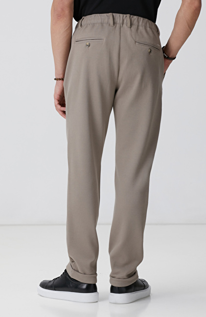 Jogger Fit; Lastikli Orta Bel; Mikro Desenli; Dokuma Pantolon; Duble Paça; 4 Cepli
