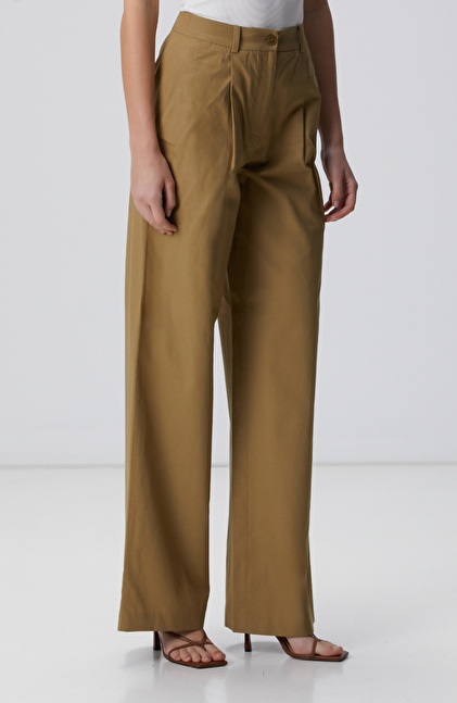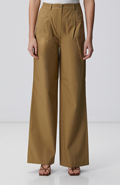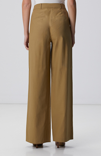 Basic Fit; Normal Bel; Bol Paça; Dokuma Pantolon; Düz Renk; Pili Detaylı; Cepli