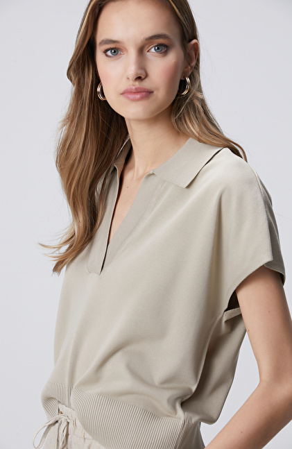 Vizon Polo Yaka Düğmesiz Kısa Kol Basic Kazak