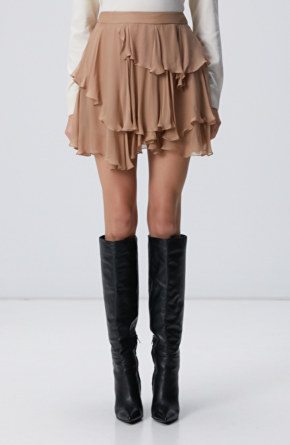Volanlı Fit; Normal Bel; Cepsiz; Şifon Mini Etek