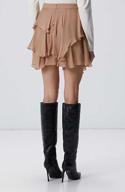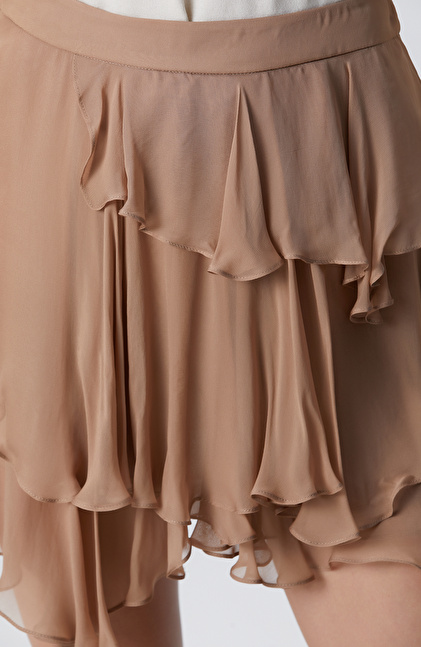 NETWORK Smart Casual Vizon Şifon Volanlı Mini Etek