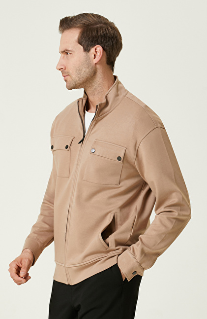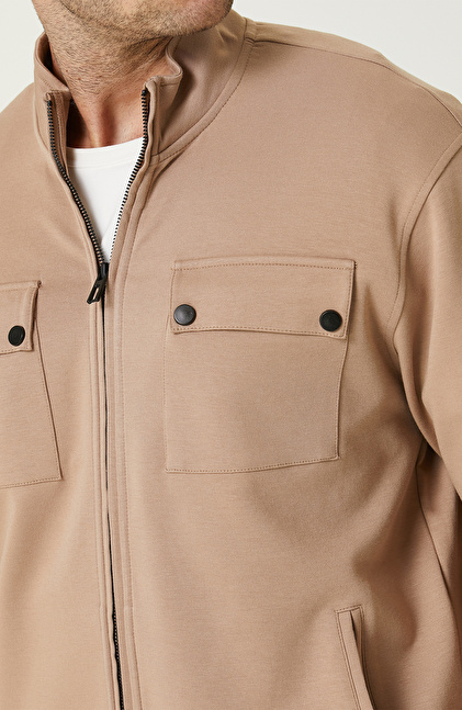 Slim Fit; Dik Yaka; Uzun Kol; Örme Sweatshirt; Fermuarlı; Göğüs Cep Detaylı