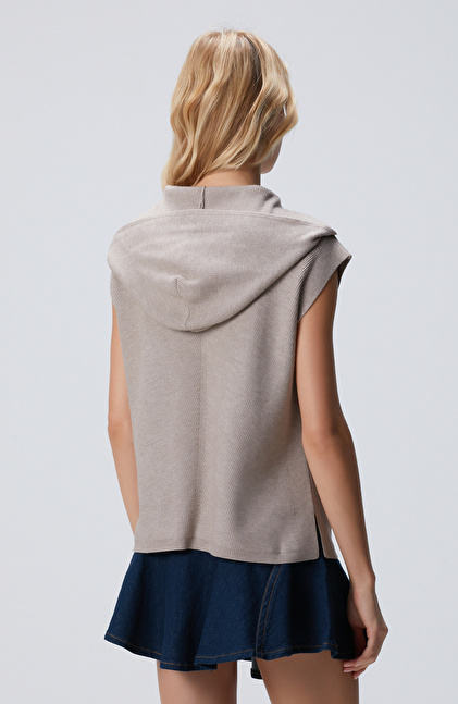 Vizon Verev Desen Örgü Kapüşonlu Kolsuz Kazak