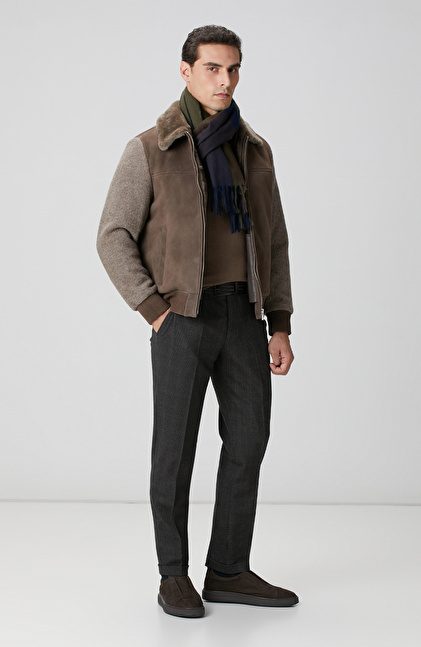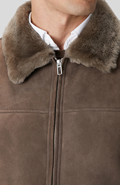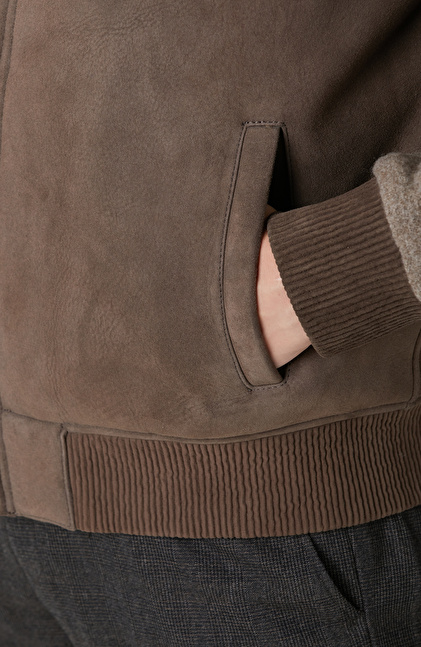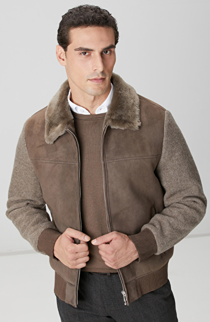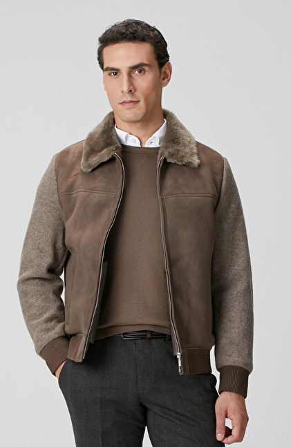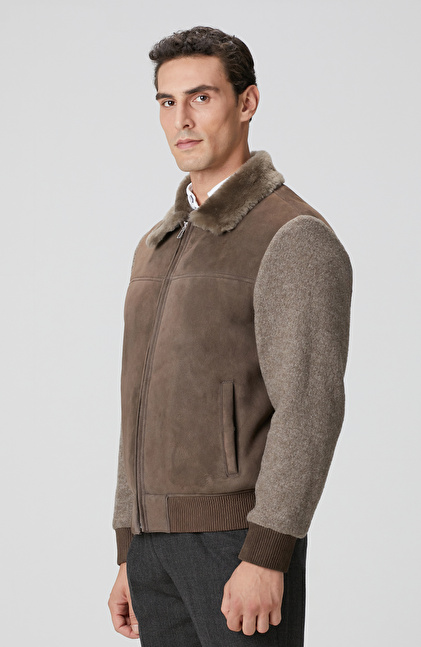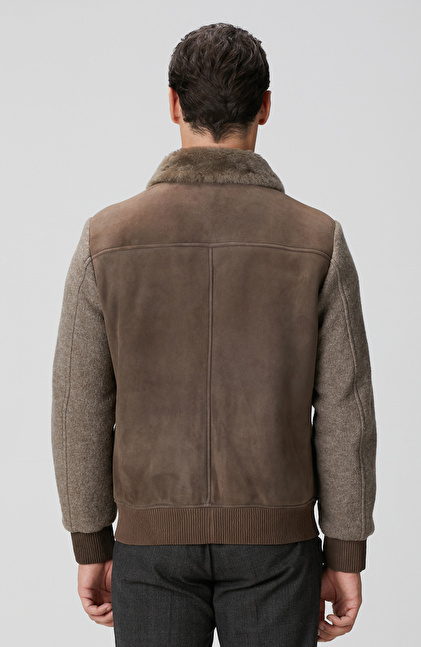 Vizon Yakası Kürklü Deri Mont