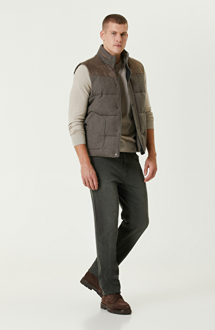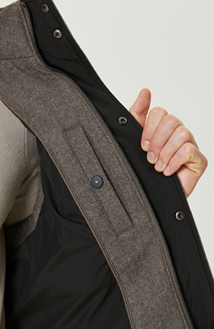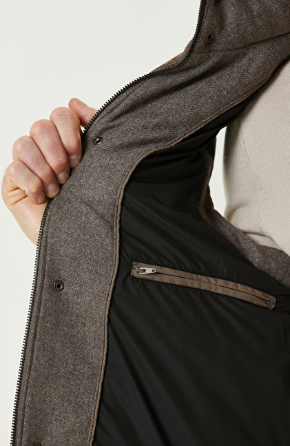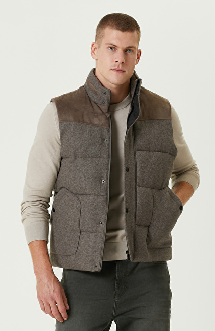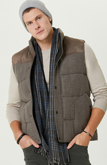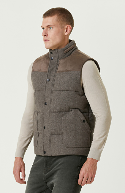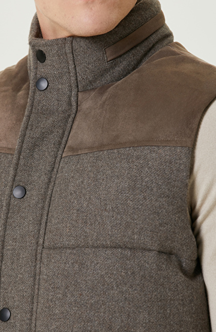 Vizon Yün Karışımlı Kapüşonlu Puffer Casual Yelek