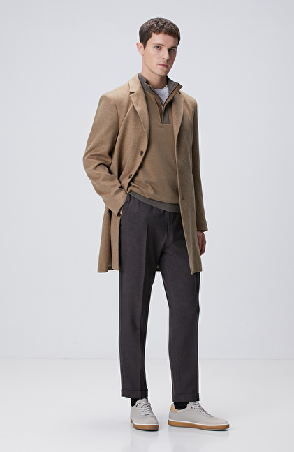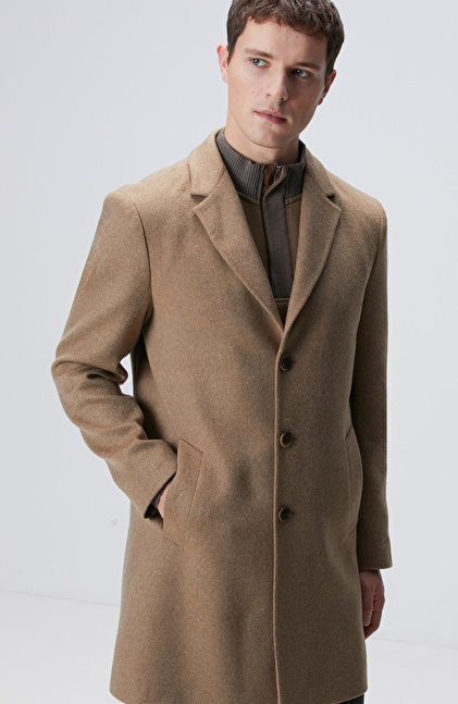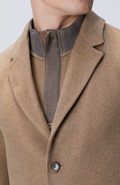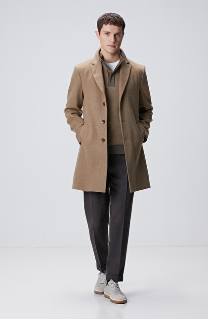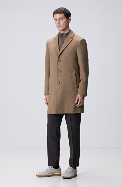 Slim Fit; Mono Yaka; Uzun Kol; Yün Karışımlı; Dokuma Palto