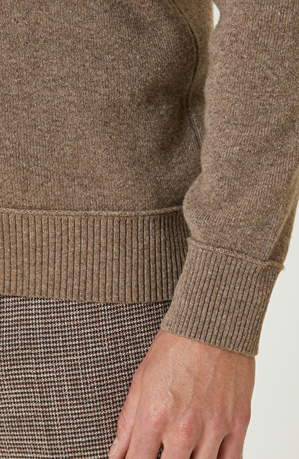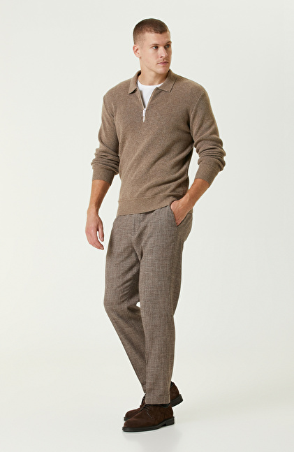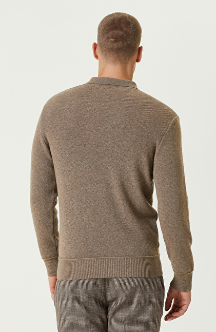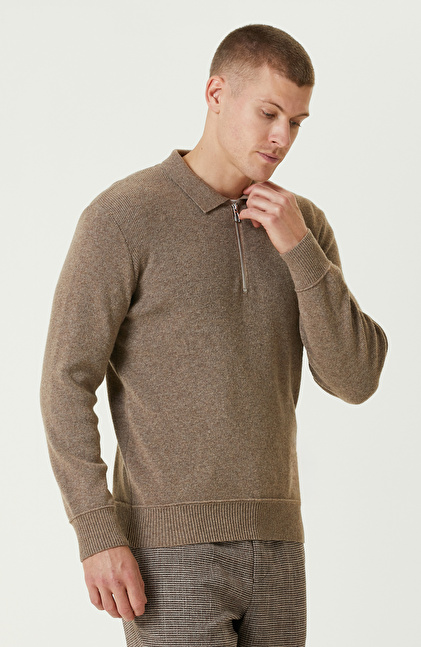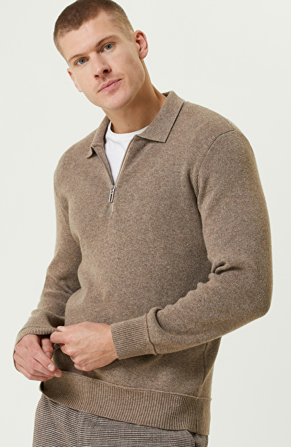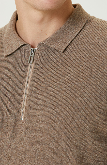 Vizon Yün Karışımlı Polo Yaka Fermuarlı Triko Kazak