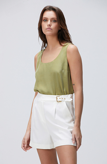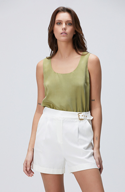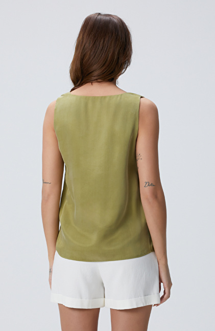 Yağ Yeşili Cupro Bluz
