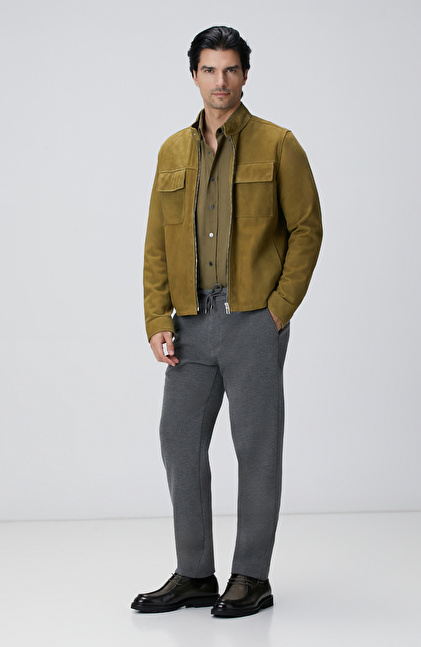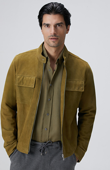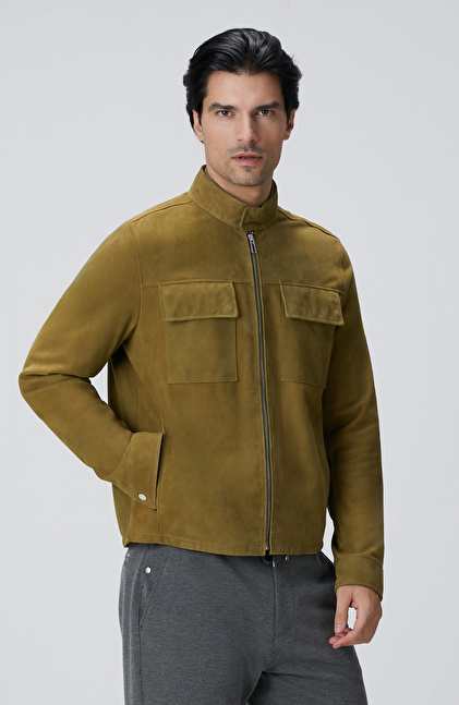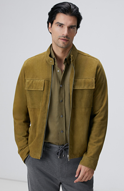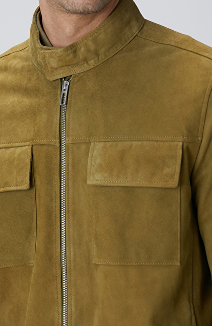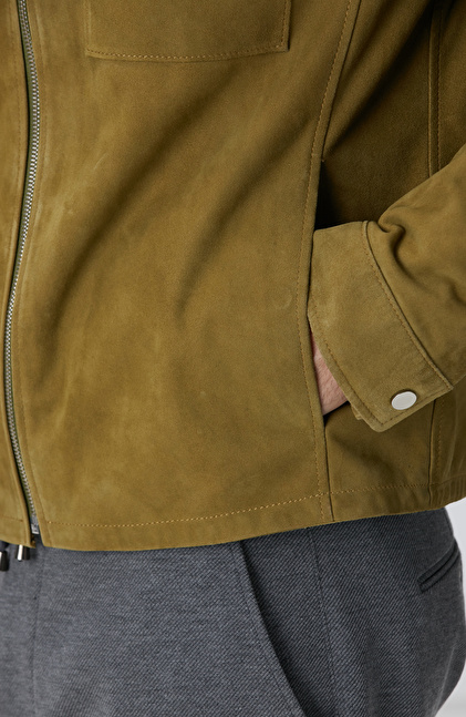 Yağ Yeşili Süet Deri Mont