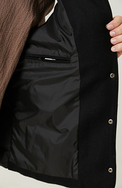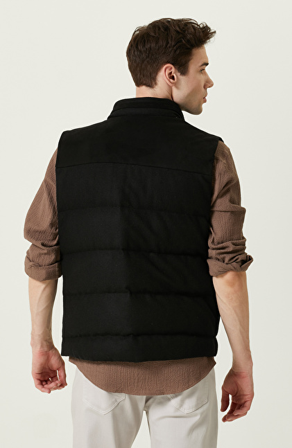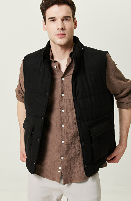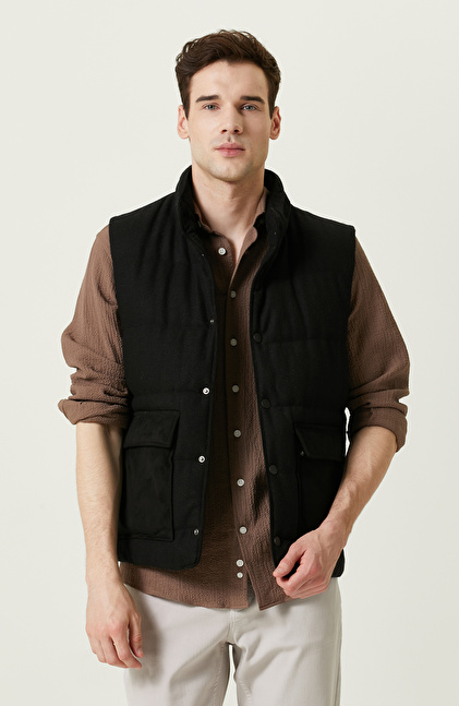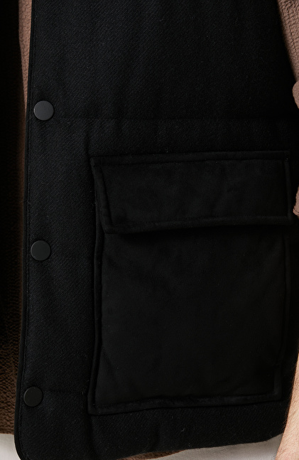 Yan Cep Fermuarlı Dik Yaka Siyah Yelek