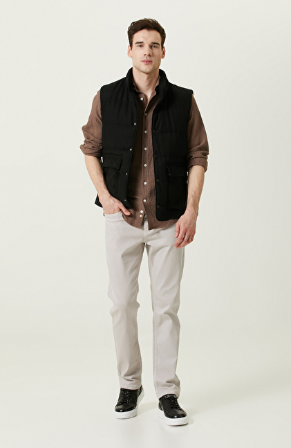 NetWork Casual tarzına sahip Yan Cep Fermuarlı Dik Yaka Siyah Yelek, modern ve sosyal hayatta aktif erkeklere hitap eder. Casual ve basic kombininizi tamamlamak için kullanabileceğiniz bu yelek, lüks moda çizgisini yansıtan zamansız tasarımı ile öne çıkar. Böylece kış sezonunda farklı kombinlerinizle birlikte kullanabilirsiniz. Yün içerikli kumaşı ile kendini öne çıkardığı gibi üşümemenizi de sağlayabilir. Kapaklı ceplerle birlikte yan cebe de sahiptir ve fonksiyonellik sunar. İstediğiniz zaman kapüşonunu çıkarabilir ve farklı hava koşullarına uygun olarak kullanabilirsiniz. İddialı ve konforlu yapıyı bir araya getiren bu yeleği, bej pantolon, kahverengi gömlek ve siyah sneaker kombinlerinizde kullanabilirsiniz.