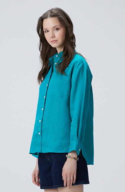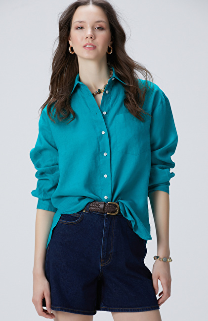 Green Basic Linen Shirt
