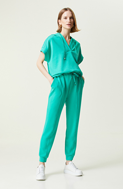 Yeşil Bel Kordon Detaylı Basic Fit Eşofman Altı
