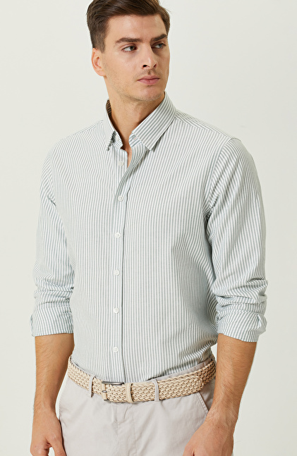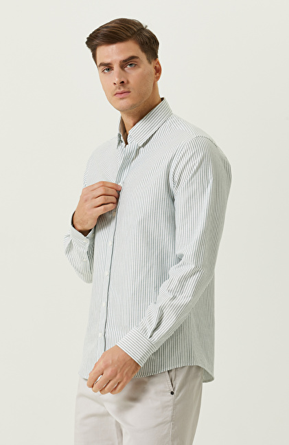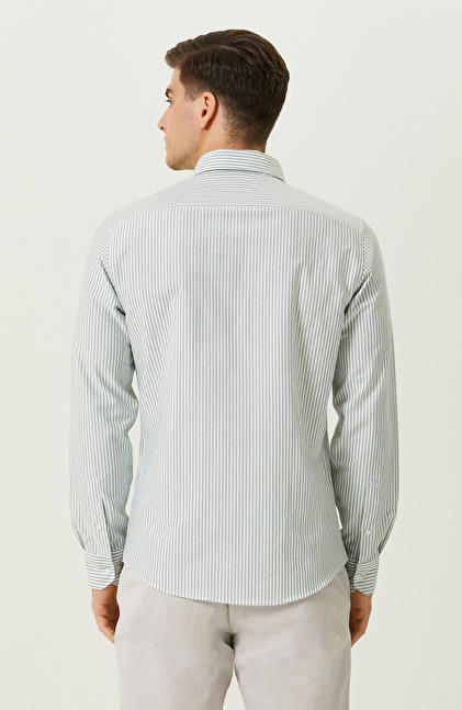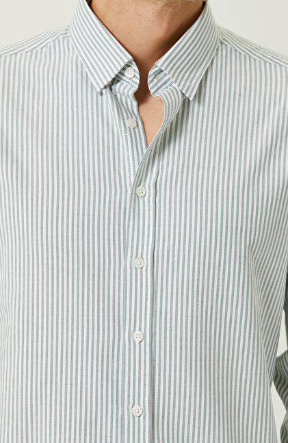 Yeşil-Beyaz Çizgili Uzun Kollu Gömlek