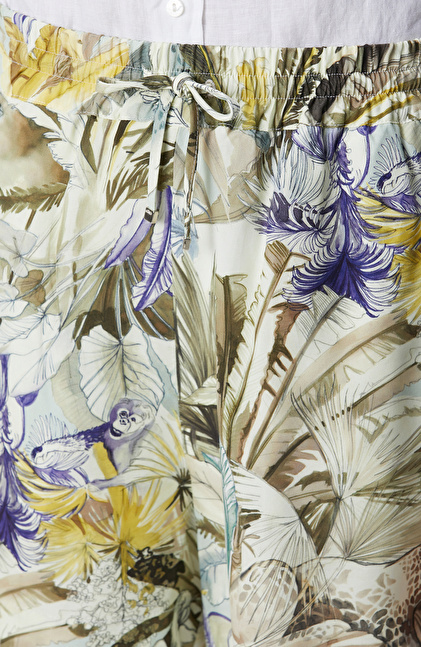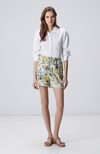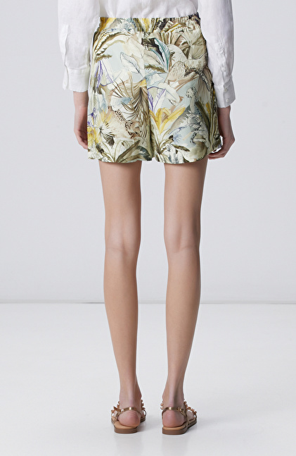 Yeşil Desenli Keten Şort