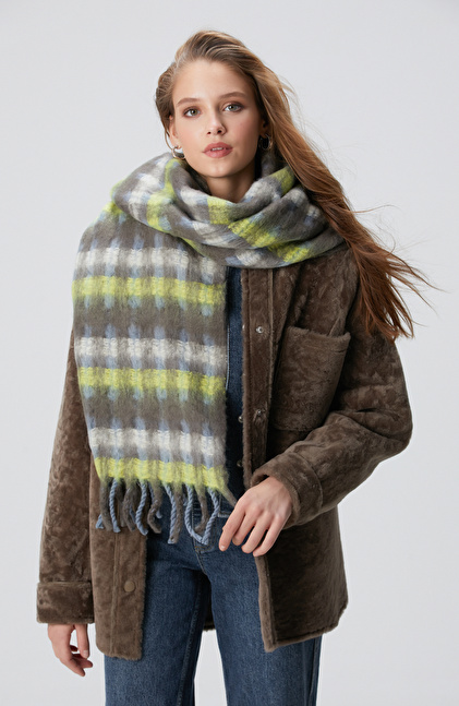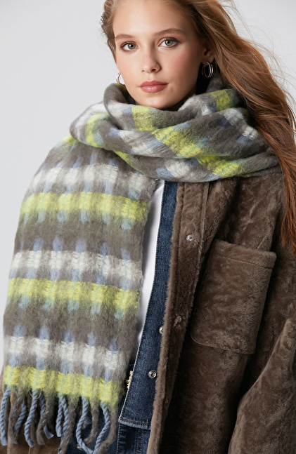 Tükenmek Üzere Yeşil Kadın Yün Karışımlı Atkı