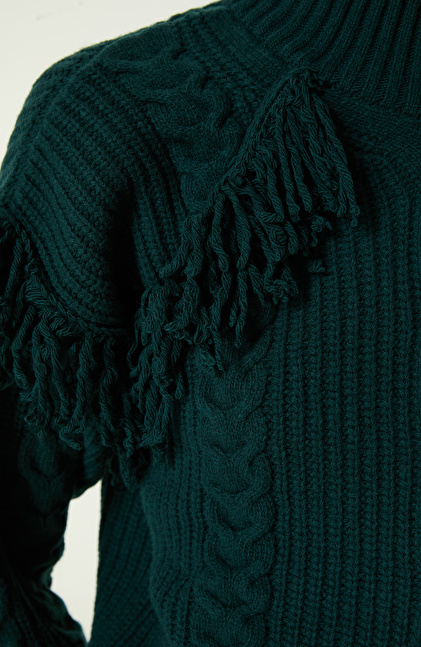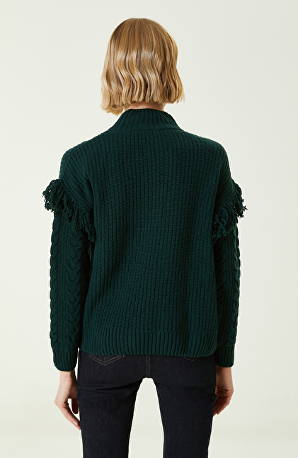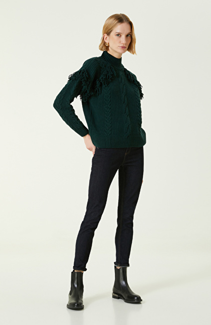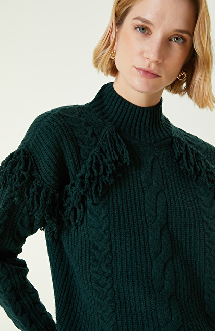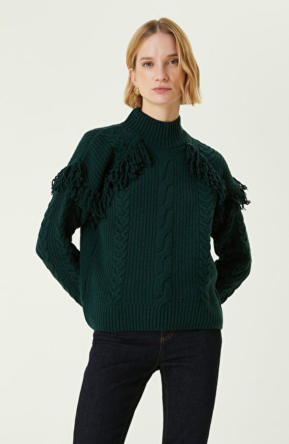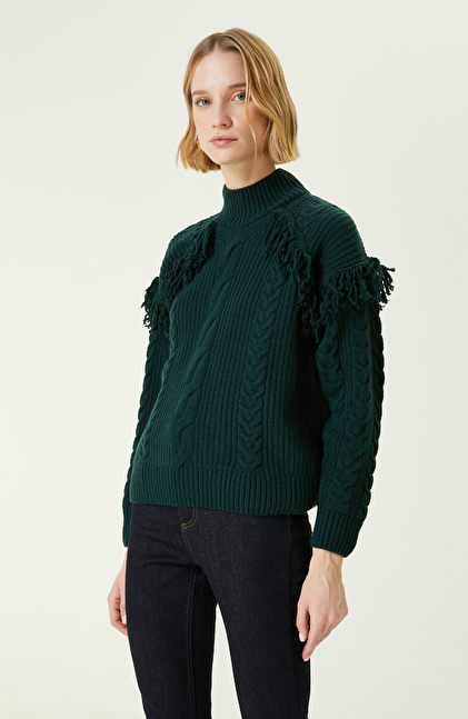 Yeşil Örgü Dokulu Yün Kazak