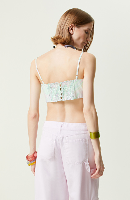NetWork’ün yeniliklere açık ve zamansız stilini vurguluyan Yeşil Pembe Desenli Dokuma Büstiyer, ilkbahar/yaz sezonu için kadın gardırobunun çarpıcı tasarımları arasında yer alır. Kaliteli ve yumuşak pamuk kumaştan üretilen büstiyer, büzgülü ve düğmeli sırt detayı sayesinde giyim kolaylığı sağlar. Freshener serisinin smart casual çizgisini taşıyan ve modern metropol kadınının tarzı ile uyumlu tasarım, NetWork’ün ilham veren ve iddialı parçalarından biridir. Bu göz alıcı büstiyeri isterseniz bol paça pantolon ve sneaker’larla isterseniz de mini etek ve topuklu sandaletler ile kombinleyebilir, farklı stiller yaratabilirsiniz.