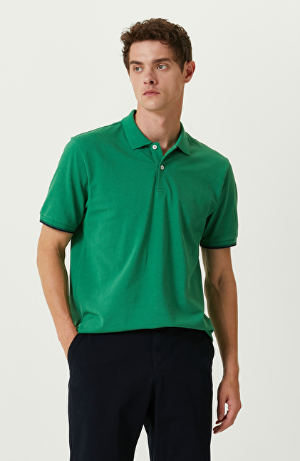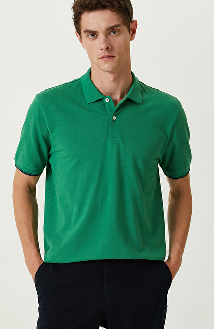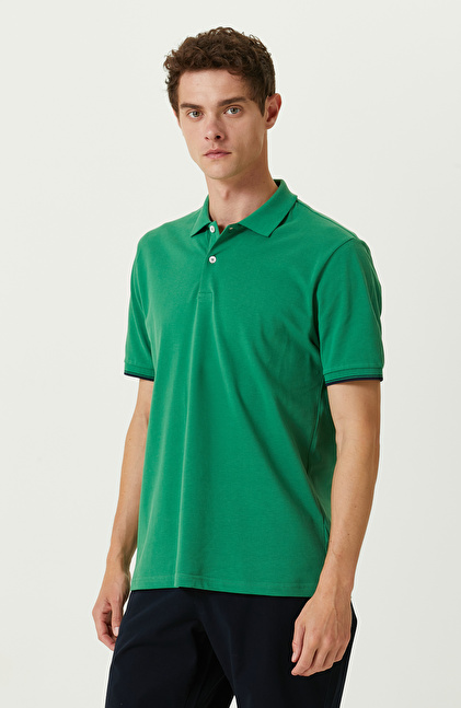 Yeşil Polo Yaka Pamuklu T-Shirt