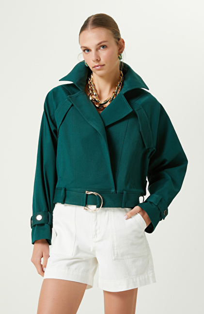 NetWork'ün benzersiz ve lüks stilini gözler önüne seren Ördek Başı Yeşil Rengi Ceket Yaka Mont, canlı rengi ve tasarımı sayesinde özgüveni yüksek kadınlara hitap eder. Yaz koleksiyonunda öne çıkan mont, mükemmel rengi ile birçok kombine ilham verir. Uzun kol, dokuma kumaşı ve ceket yakası farklı stillere uyarlamayı kolaylaştırır. Bu sayede t-shirt, askılı bluz, elbise, denim pantolon veya eşofman gibi farklı parçalarla eşleştirilebilir. Regular fit kalıba sahip olduğundan her zaman rahat hissetmenizi sağlar ve trendlere uygun görünümler elde etmenize yardımcı olur. Siz de yeşil montu, kahverengi midi etek, vizon loafer, bej triko bluz ile giyebilir, altın renk takılarla klasik stilinizi vurgulayabilirsiniz.