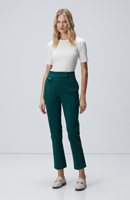 Yeşil Yüksek Bel Dar Paça Pantolon