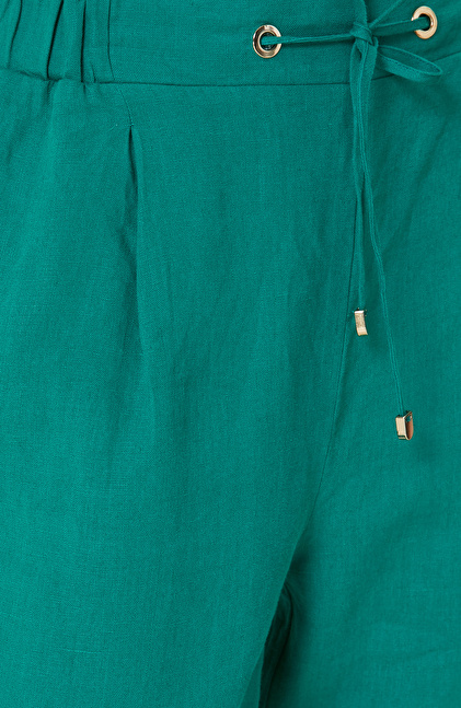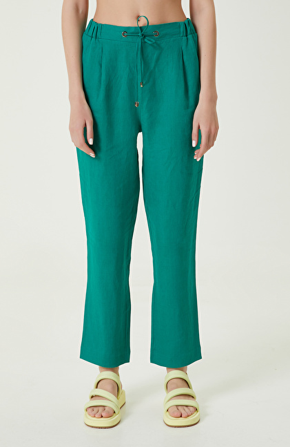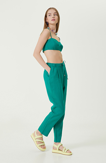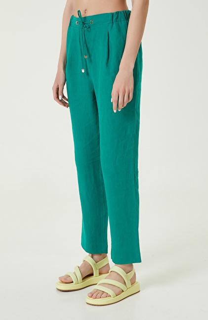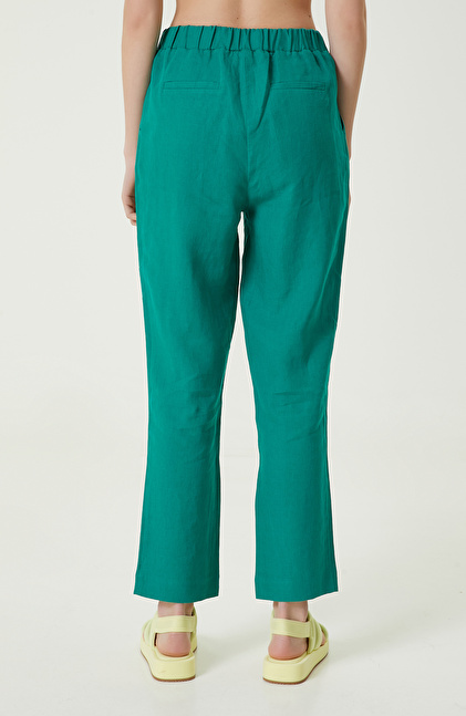 NETWORK Smart Casual Yeşil Yüksek Bel Keten Pantolon