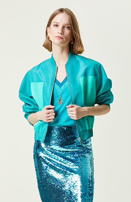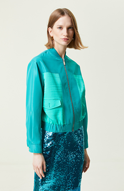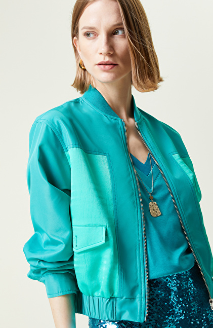 NetWork’ün yeniliklere açık ve entelektüel tarzını yansıtan Ördek Başı Yeşili Dik Yaka Mont, ilkbahar/yaz sezonu için kadın gardırobunun renkli ve ilham veren tasarımları arasında bulunur. Color Manifesto serisinin smart casual parçalarından biri olan renk bloklu bomber mont, NetWork kadınının dinamik ve modern stiliyle uyumludur. Yüksek kalite dokuma kumaşı ve regular fit kesimi sayesinde bu mont günlük kullanımda ekstra konfor sağlar. Bu kusursuz ve zamansız tasarımı isterseniz yüksek bel beyaz düz paça pantolon ve beyaz sneaker ile giyebilir isterseniz de payetli etek ve topuklu ayakkabı ile kombinleyerek sıra dışı bir tarz oluşturabilirsiniz.