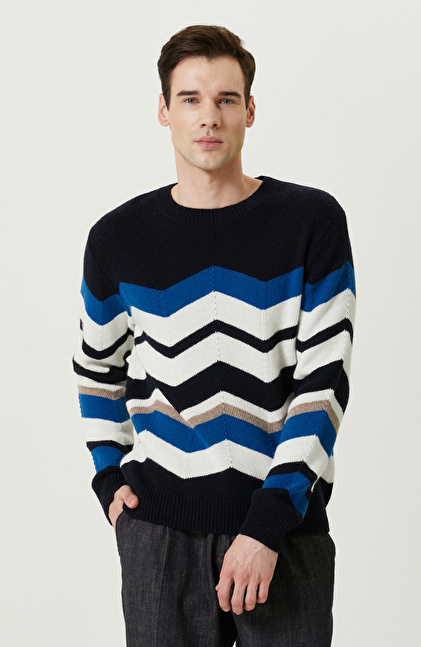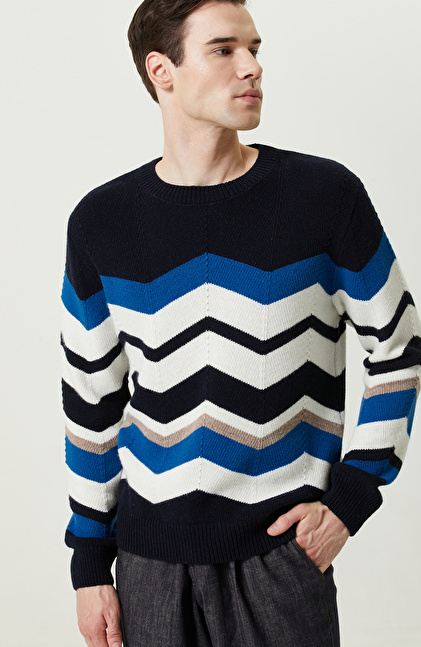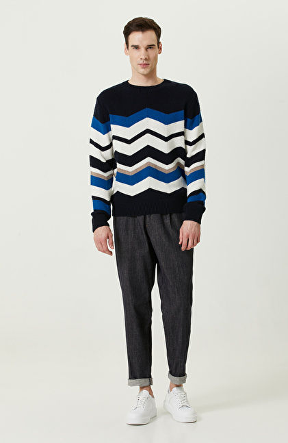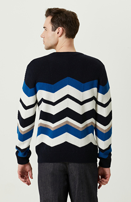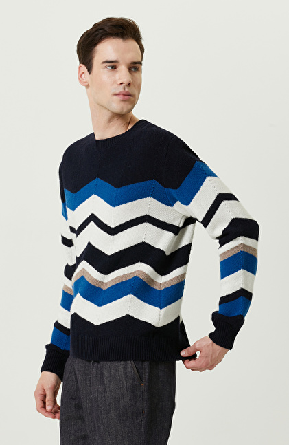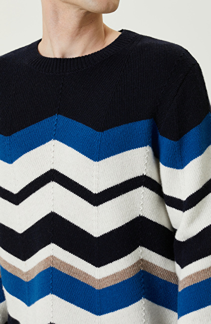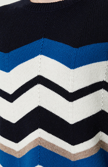 Zikzak Desenli Lacivert Triko Kazak